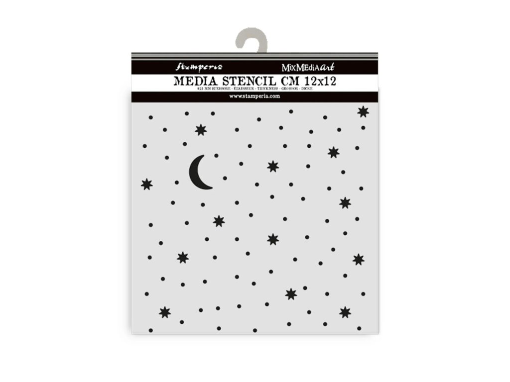 Plastová šablona Stamperia Alice in Christmas Alenka hvězdy a měsíc 12x12cm