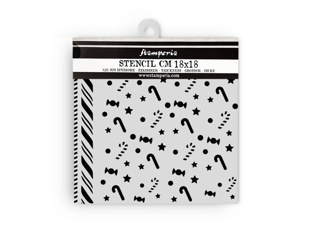 Plastová šablona Stamperia Candy Christmas Sladké Vánoce cukrové hůlky 18x18cm
