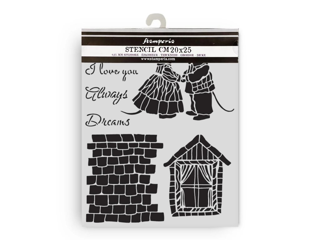 Plastová šablona Stamperia Family Thick Rodinka myší domek 20x25cm