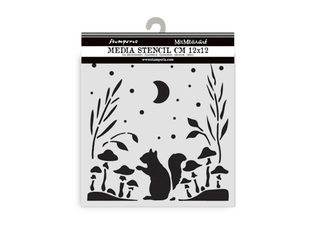 Plastová šablona Stamperia Herbarium Silvae lesní herbář veverka 12x12cm