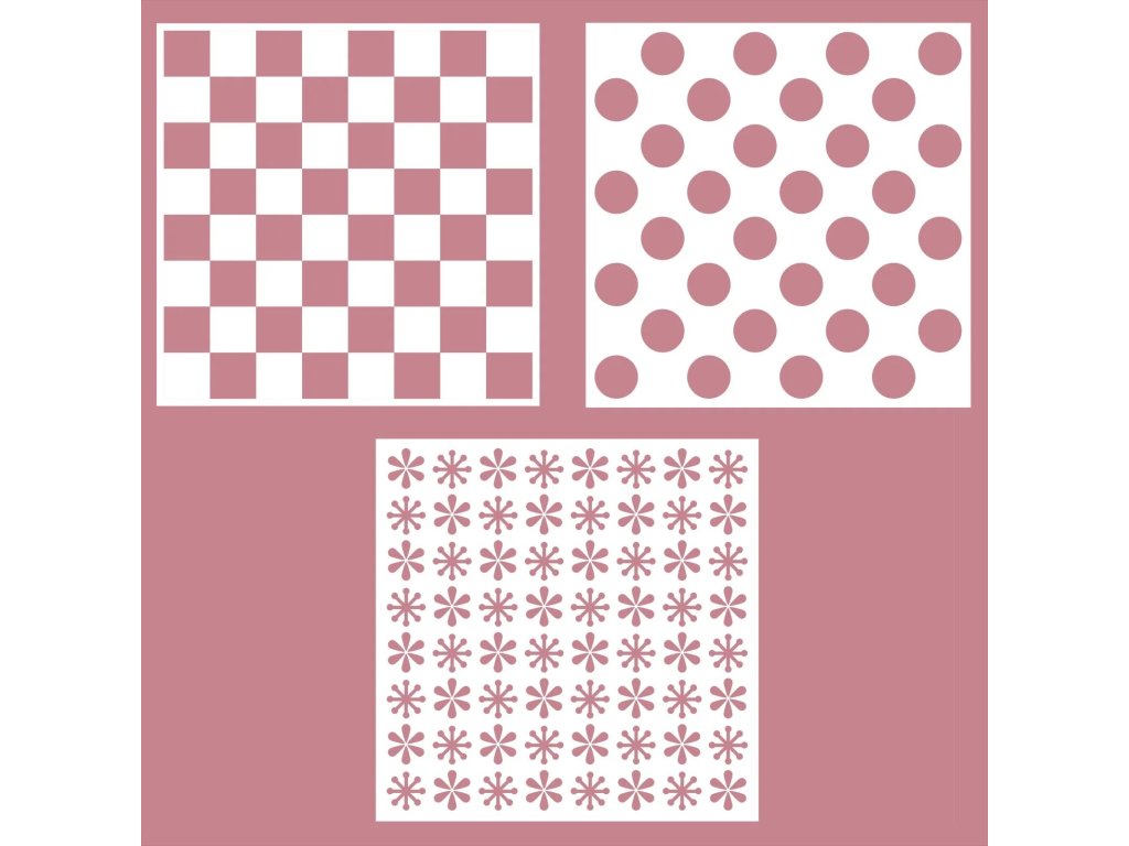 Tyto 3 šablony o rozměrech 15x15 cm tvoří jeden kostkovaný vzor.