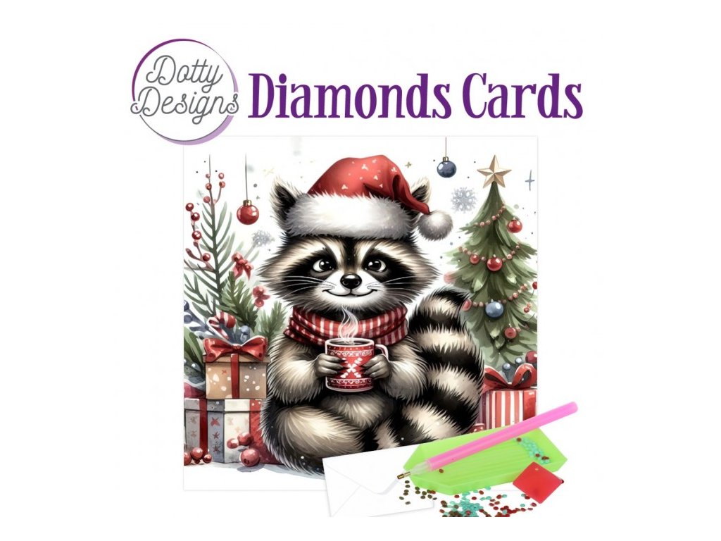 Přání z diamantových kamínků Christmas Raccoon Vánoční mýval