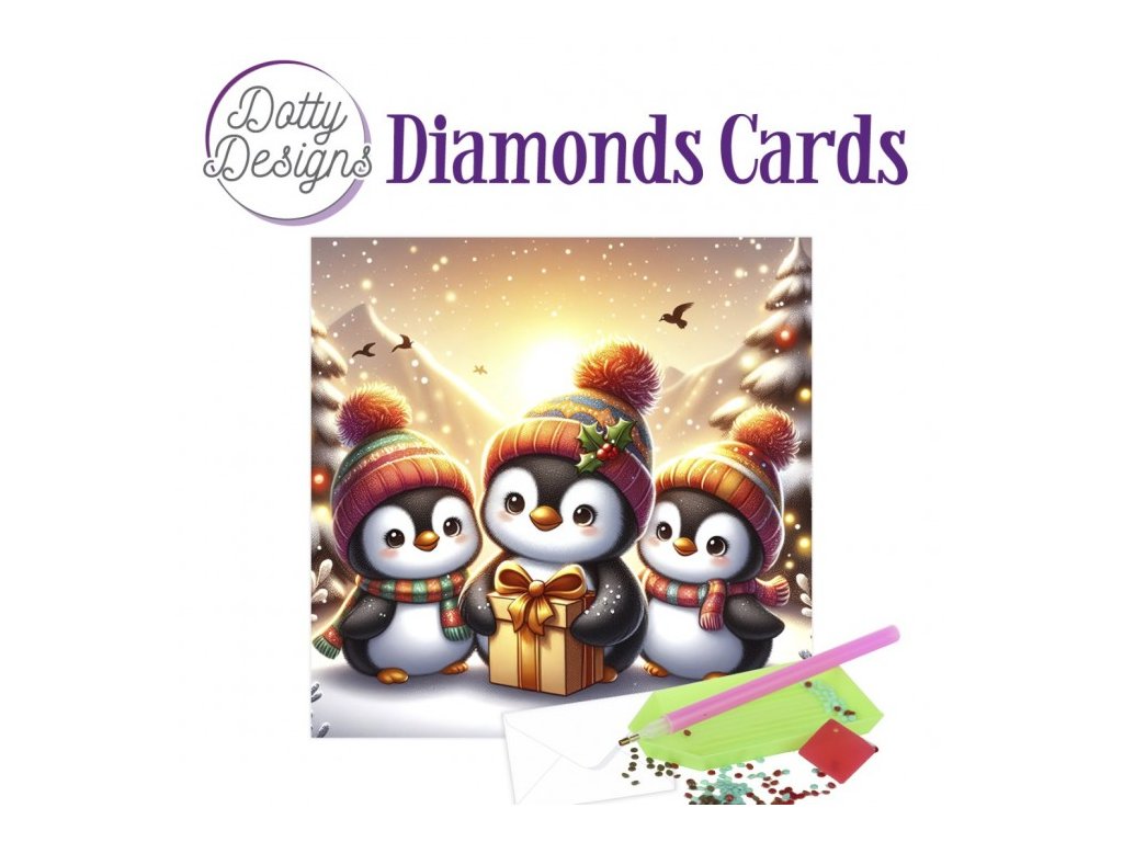 Přání z diamantových kamínků Penguin tři tučňáci