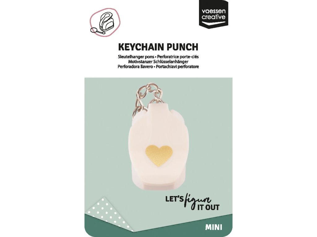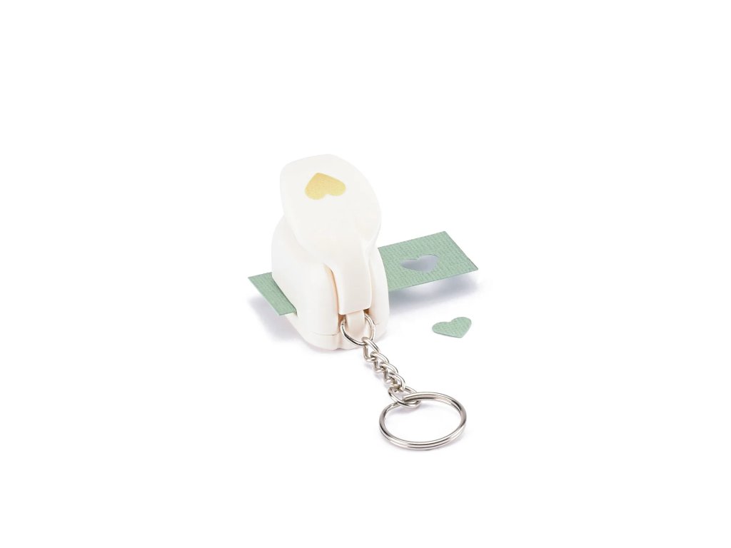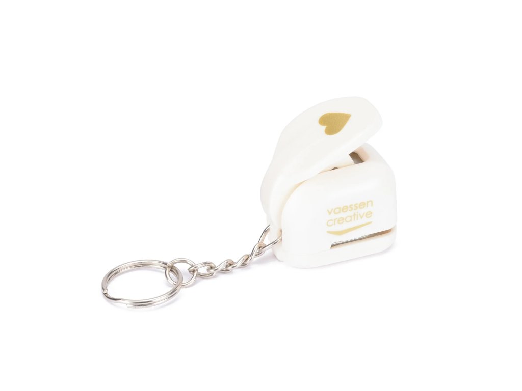 Chcete mít po ruce praktickou děrovačku, ať jste kdekoli? Pak si připevněte tuto miniaturní děrovačku na klíčenku! S děrovačkou Vaessen Creative můžete snadno vyrazit* srdíčko z papíru, kartonu, fotografií, korku, tenké pěny a dalších materiálů.