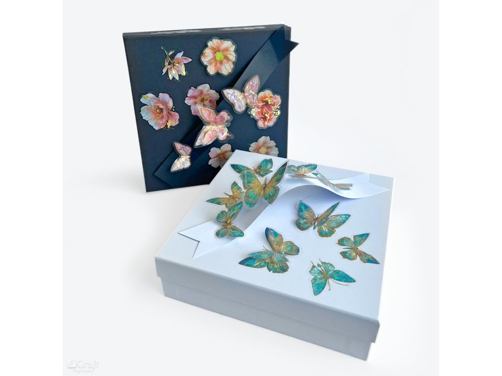 - Samolepky vyrobené z vysoce kvalitní, průhledné PET fólie s motivy motýlů v duhových odstínech s třpytivým efektem, ideální pro ty, kteří hledají elegantní a dlouhotrvající dekorace.