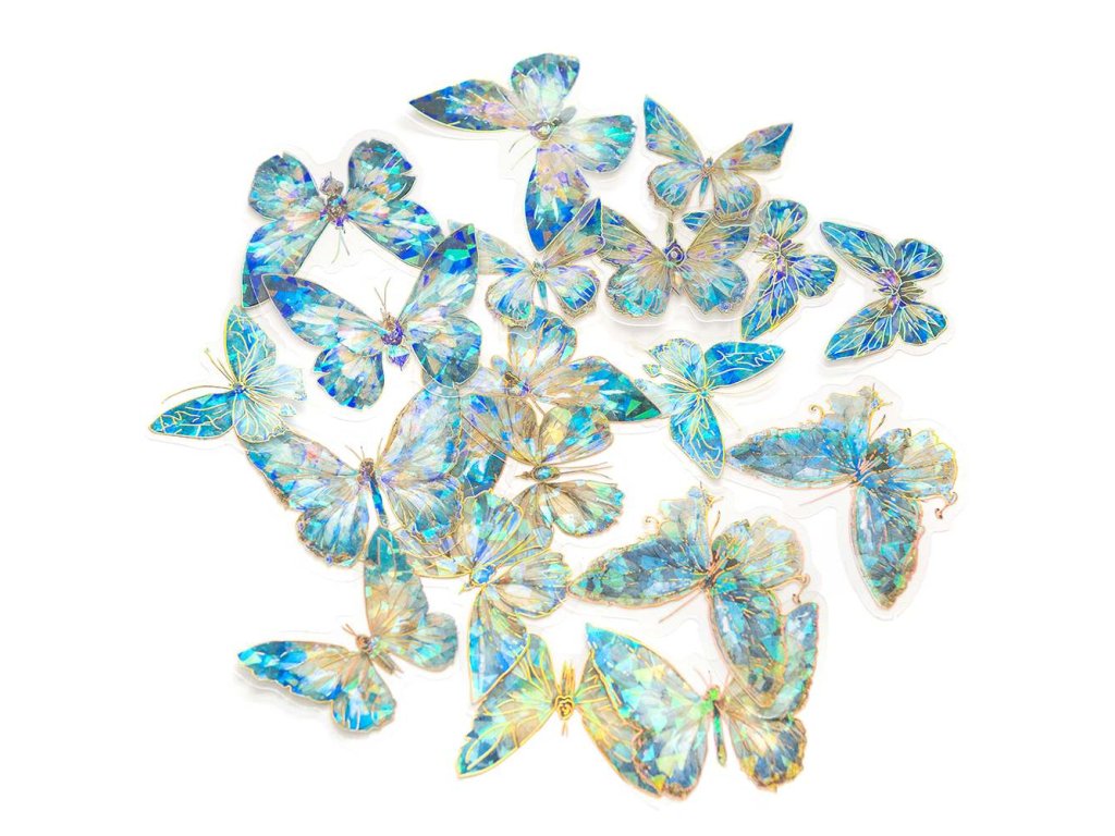 Průhledné samolepky motýli Motýli modrý hvězdný prach 20ks