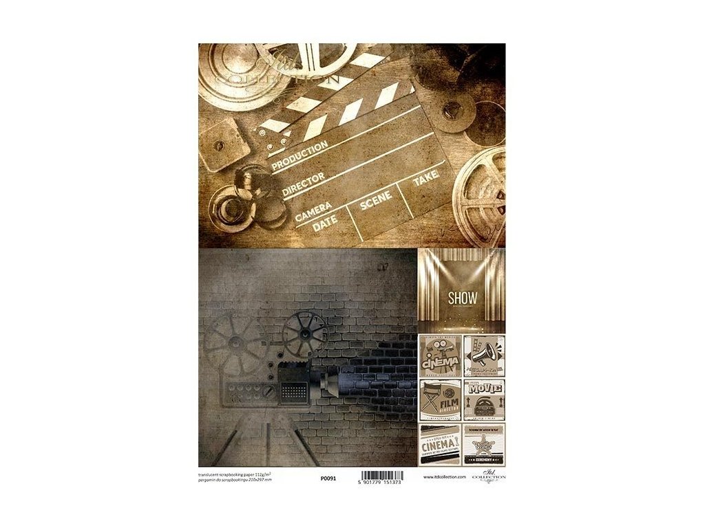 průsvitné papíry pro scrapbooking - klapka, navijáky, kamera