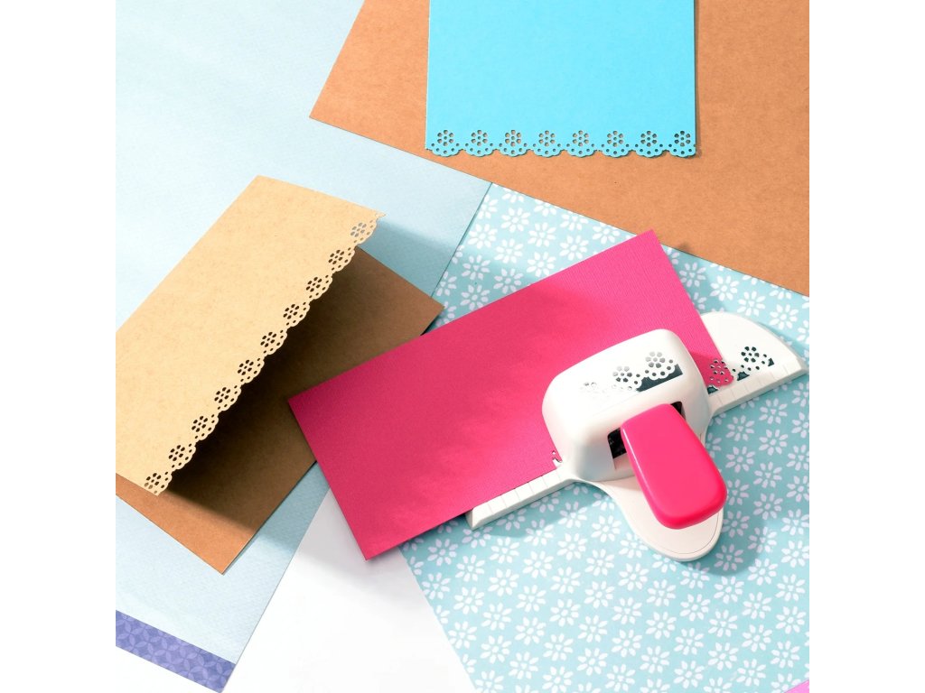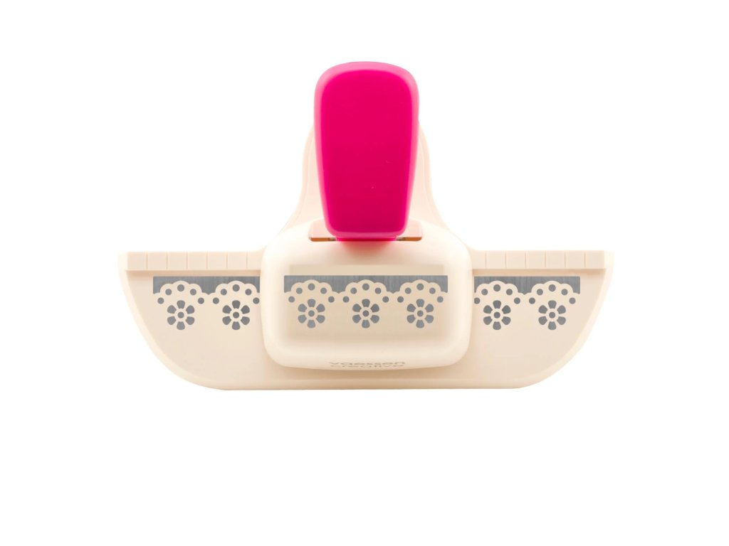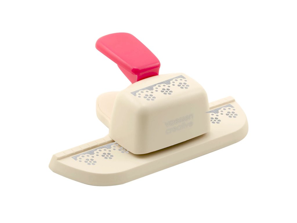 S touto děrovačkou od Vaessen Creative můžete snadno vyrazit* ozdobný okraj s květinovými tečkami do papíru,kartonu, fotografií, korku, tenké pěny a dalších materiálů. Děrovačky jsou ideální pro zdobení okrajů karet, stránek scrapbooků, diářů, štítků a pozvánek. Použití děrovačky je jednoduché a uživatelsky přívětivé. Jednoduše vložte materiál do děrovačky a stiskněte. Poté zarovnejte děrovačku s již vyříznutým ozdobným okrajem, aby vzor pěkně seděl. Tento postup opakujte, dokud není okraj hotový. Během několika sekund získáte krásný detailní vzor na svém papírovém projektu.