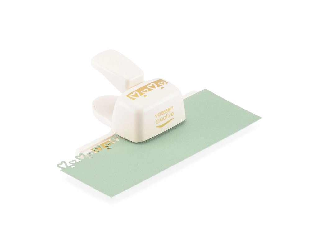 S touto děrovačkou od Vaessen Creative můžete snadno vyrazit* ozdobný okraj se srdíčkem do papíru,kartonu, fotografií, korku, tenké pěny a dalších materiálů. Děrovačky jsou ideální pro zdobení okrajů karet, stránek scrapbooků, diářů, štítků a pozvánek. Použití děrovačky je jednoduché a uživatelsky přívětivé. Jednoduše vložte materiál do děrovačky a stiskněte. Poté zarovnejte děrovačku s již vyříznutým ozdobným okrajem, aby vzor pěkně seděl. Tento postup opakujte, dokud není okraj hotový. Během několika sekund získáte krásný detailní vzor na svém papírovém projektu.