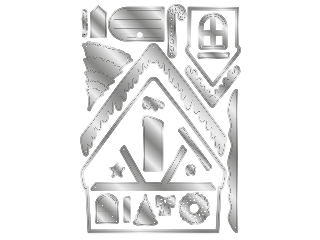 Razítka a vyřezávací kovové šablony Christmas Shaped Card Bases Vánoční chata