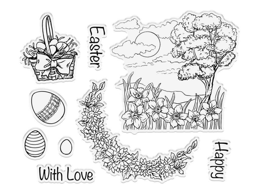 Pět razítek a devět razítek k vytvoření sladké jarní scény s velikonočním košíkem, zdobenými vajíčky, věncem květin a třemi sladkými vzkazy. Květinový věnec, vajíčka a košík mají odpovídající razítka pro vyřezání obrysového tvaru. Součástí je razítko k vytvoření venkovní scény s veselými narcisy. Navrženo tak, aby se vešlo do sady raznic Okno a příslušenství. Určeno k použití s reliéfními složkami a sadou raznic z kolekce Sheena Douglass Through the Window k přeměně předních stran přání na vlastní okenní scény pro různé příležitosti! Největší velikost raznice: 2,4„ x 4“. Kompatibilní s vykrajovacími a reliéfními stroji Gemini II, Gemini Midi a Gemini Mini. Razítka jsou vyrobena z čirého fotopolymeru, průhledná pro přesné umístění. Razítkujte pomocí voděodolného inkoustu Finesse a poté přidejte atmosférické akvarelové barvy pomocí per TriColour Aqua Pens. Nebo inkoustem Finesse Alcohol Proof pro přidání výrazné barvy fixem Classique. Velikost sady razítek 7„ x 5,6“ / velikost kovu 3,1„ x 4“. / Největší velikost raznice 2,4„ x 5,6“.