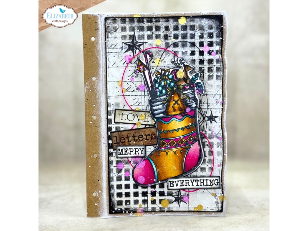 Sada průhledných razítek a vyřezávacích šablon s motivy punčochu, girlandu a čepici s vánočními květinami