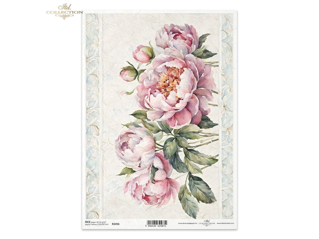 Rýžový papír ITD Collection R2456 A4 letní květiny rozkvetlá růže 1ks