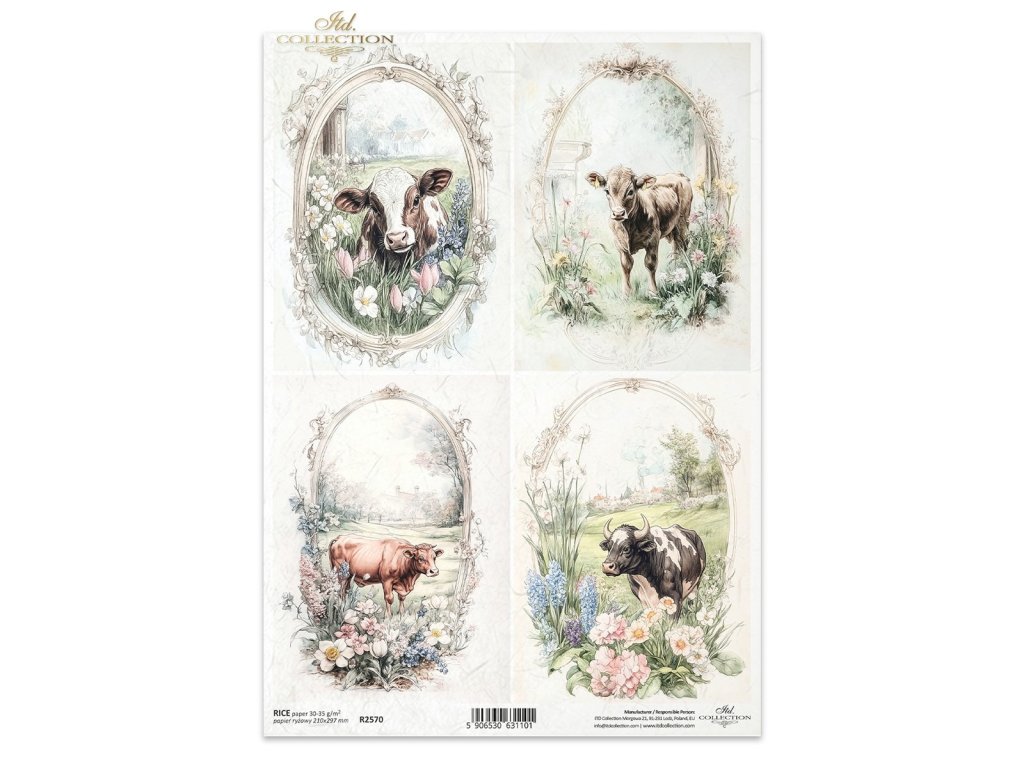 Rýžový papír ITD Collection R2570 kravičky A4 1ks