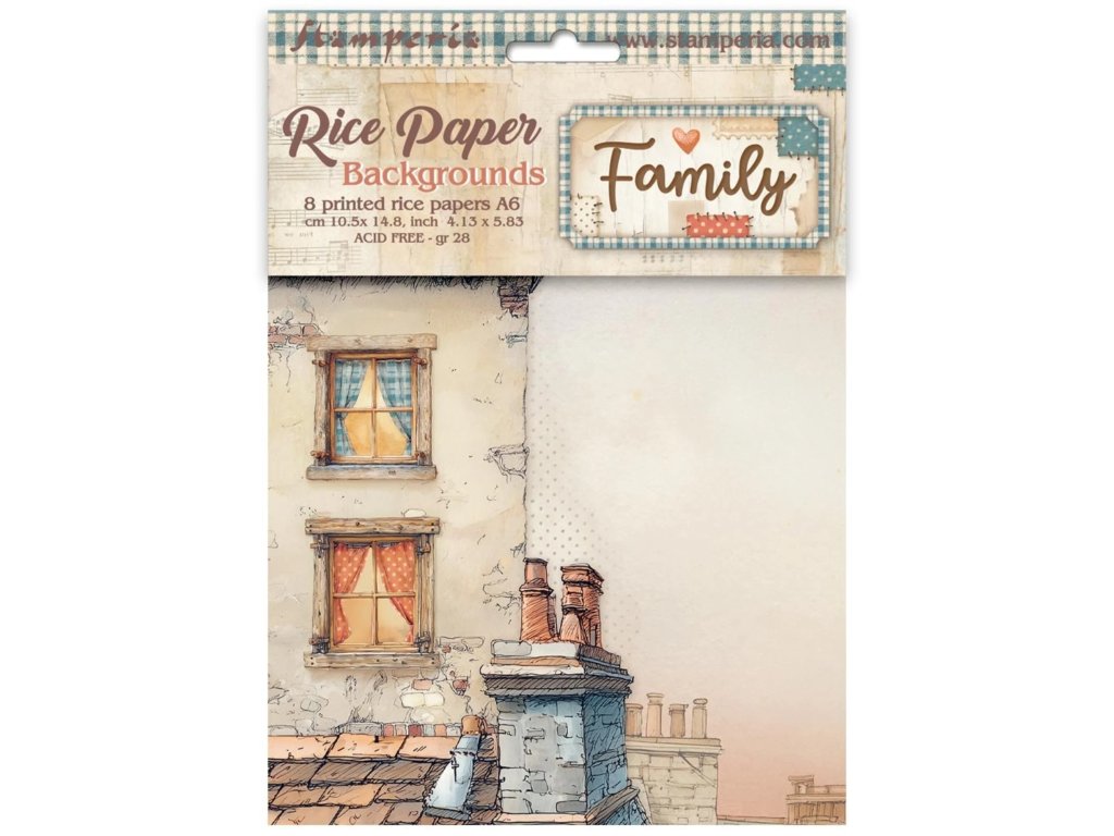 Rýžový papír Stamperia Family Rodina A6 pozadí 8 listů