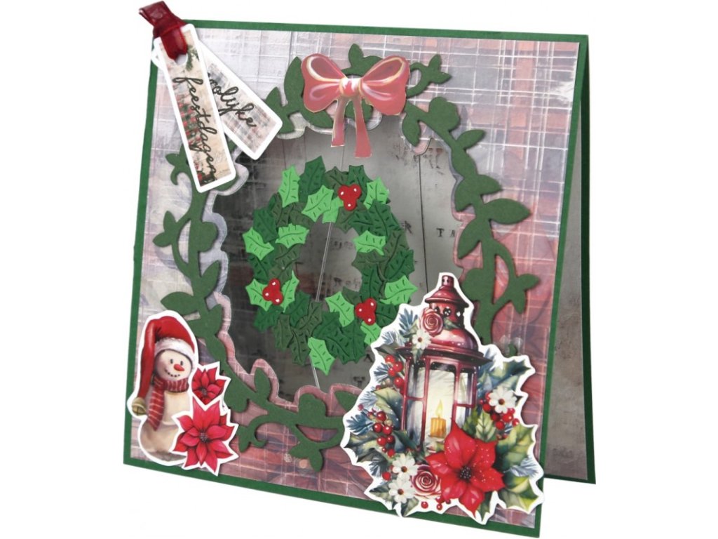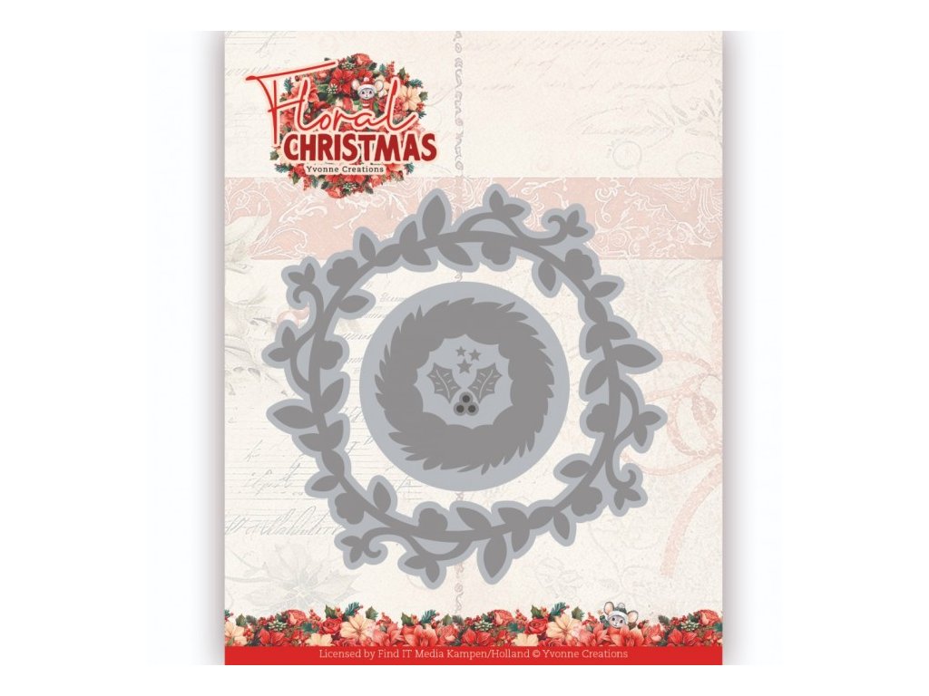 Šablona kovová vyřezávací Yvonne Ceations - Floral Christmas květinový věnec