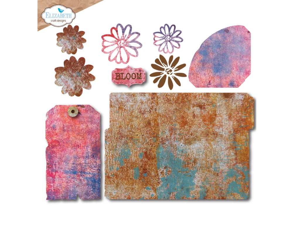 - Další raznice v sadě obsahují vrstvené květiny, visačku s narušeným okrajem a kapsu se zaobleným rohem.