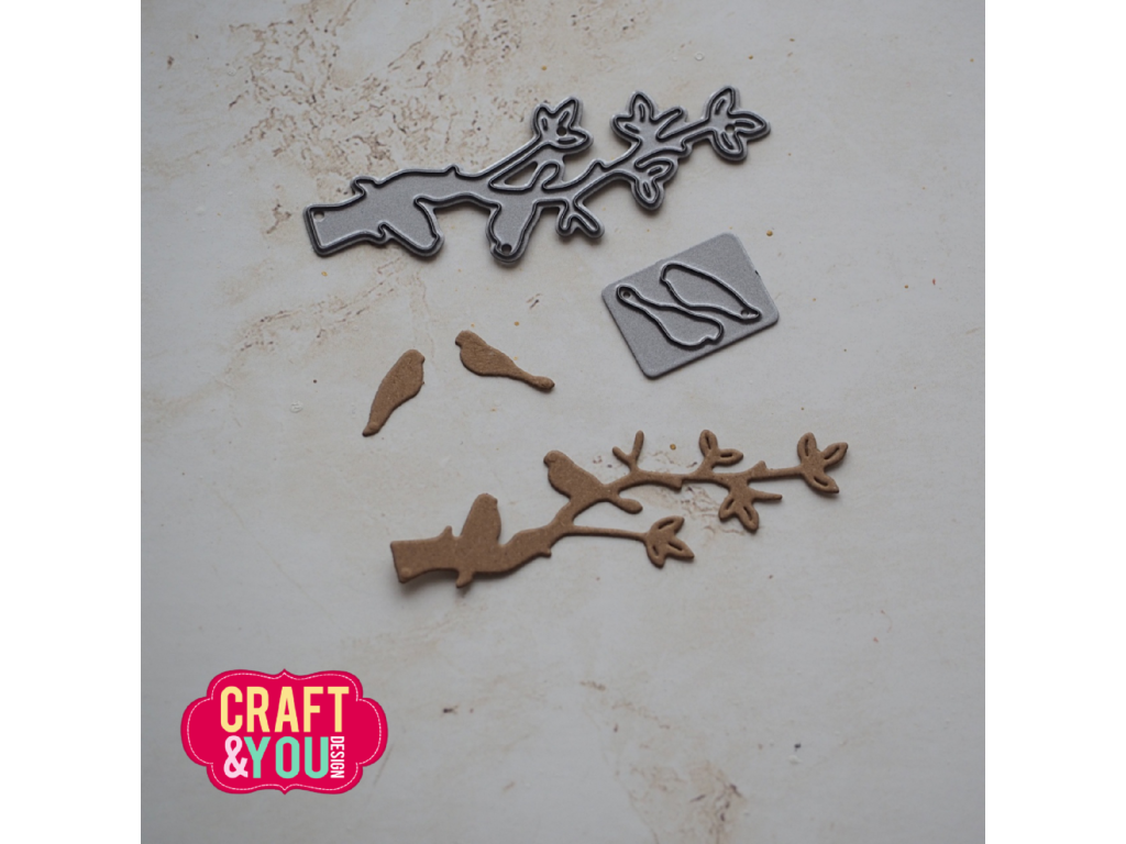 Šablona vyřezávací kovová Craft and You Birds on a Branch ptáčci na větvi