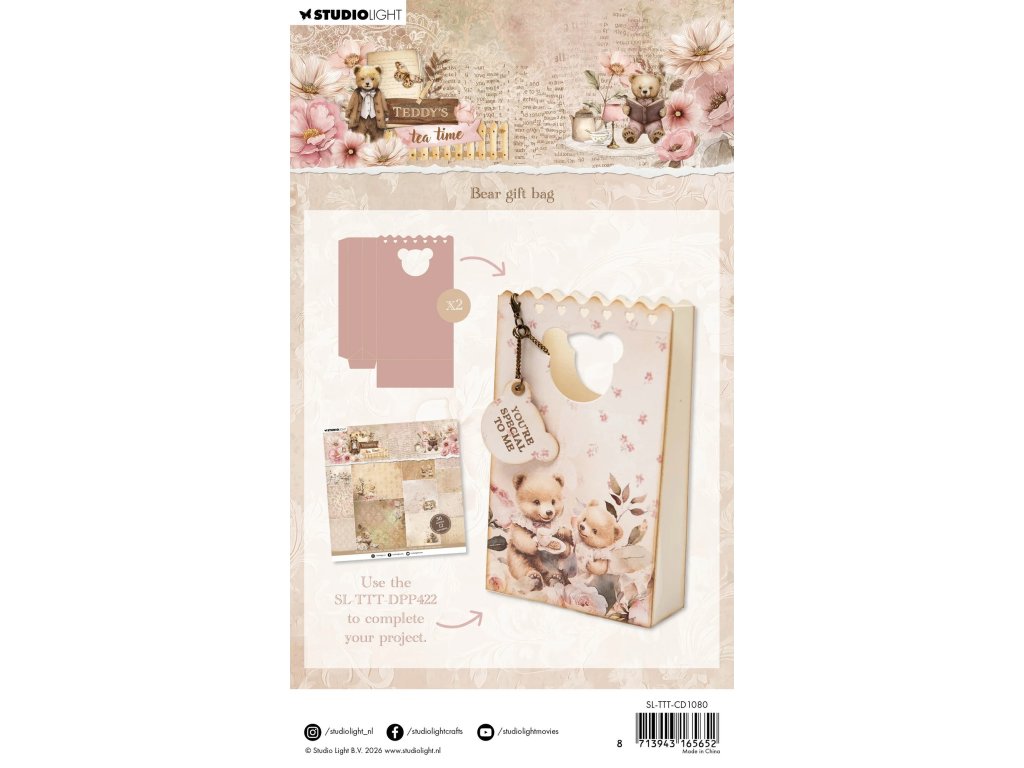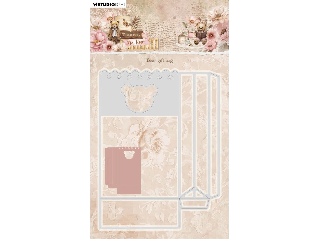 Šablona vyřezávací kovová Studio Light Teddy's Tea Time Medvědí dárková taška
