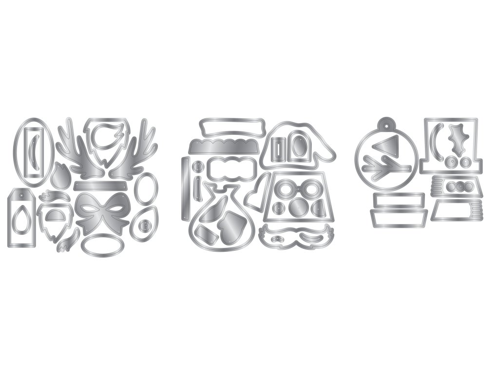 - Tato sada obsahuje 357 dílů pro vytvoření vlastních 3D krabiček s vánoční tematikou, včetně šablony pro základnu, kovových výseků pro ozdoby a elastických pásků, které jim dodávají pružný efekt.
