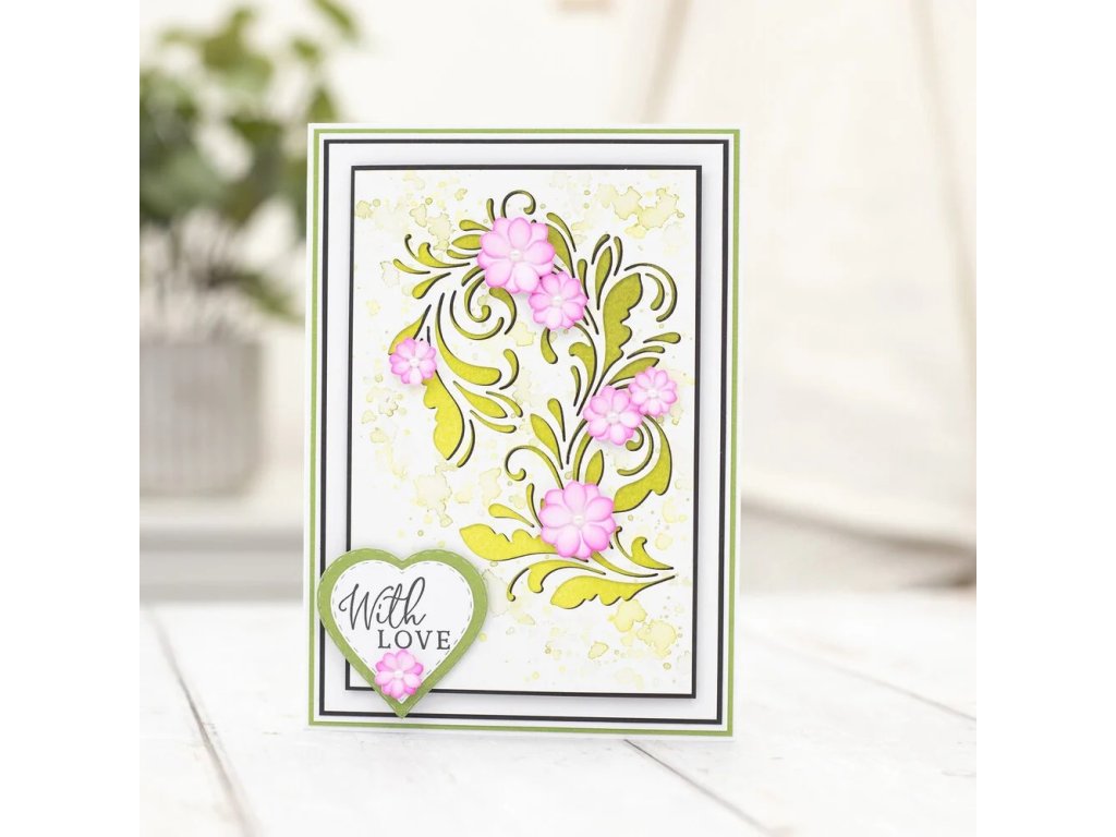Vytvořte si přání, která budou zářit zdobnou elegancí, pomocí raznice Fancy Flourish od společnosti Crafter's Companion. Tato kovová vykrajovátka vytváří bohaté, vířivé dekorace určené do rohu předních stran přání. Buďte kreativní a vrstvěte barvy přání pod vykrajovátko, aby každý složitý detail zazářil! Nebo je spojte s acetátem a flitry a vytvořte luxusní přání ve stylu shaker. Rohový design ponechává na přední straně karty místo pro nápis, který můžete přizpůsobit jakékoli příležitosti po celý rok! Jedna raznice na vyřezání opulentní vířivé dekorace určené do rohu přední strany přání. Velikost raznice: 3,4„ x 4,8“. Kompatibilní s vykrajovacími a razicími stroji Gemini II a Gemini Midi. Vyřezává karty, papír, hedvábný papír a pergamen. Součást kolekce vykrajovátek Large Flourish Corner Die od společnosti Crafter's Companion.
