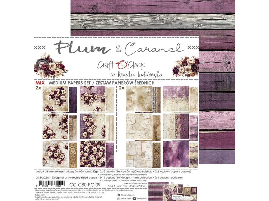 Sada papírů Craft O´Clock Plum And Caramel švestka a karamel velký mix 20x20cm