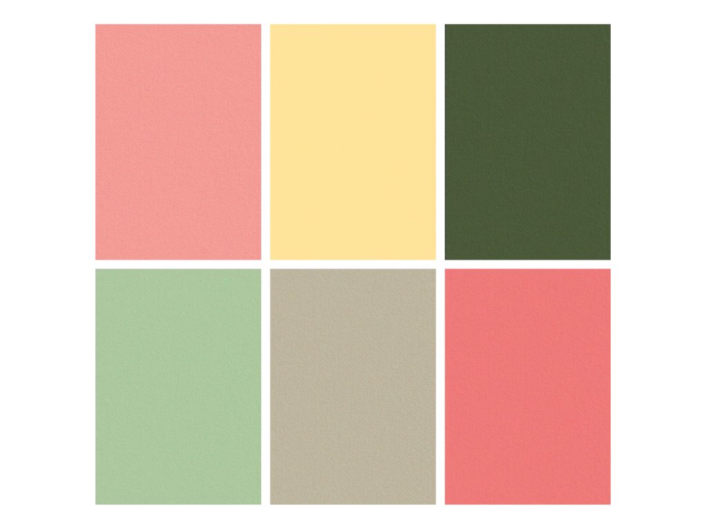 - Balíček luxusního lnu A4 z kolekce Sara Signature A Christ Dream od Crafter's Companion obsahuje šest barev – lesní zelenou, limetkovou zelenou, růžovou, žlutou, lososovou a šedou.