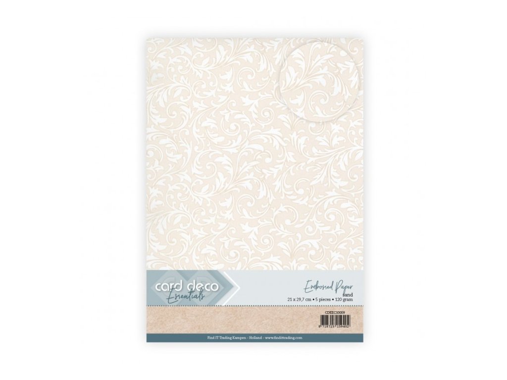 - Balení obsahuje 5 listů embosovaného papíru v nadčasové pískové barvě.