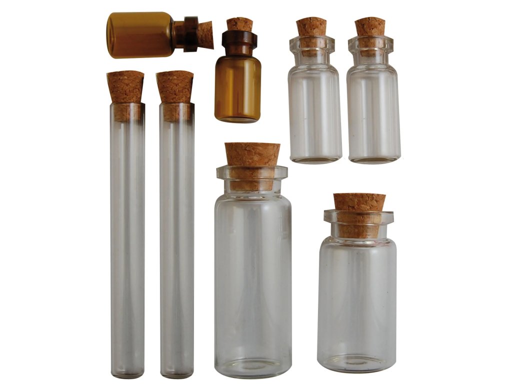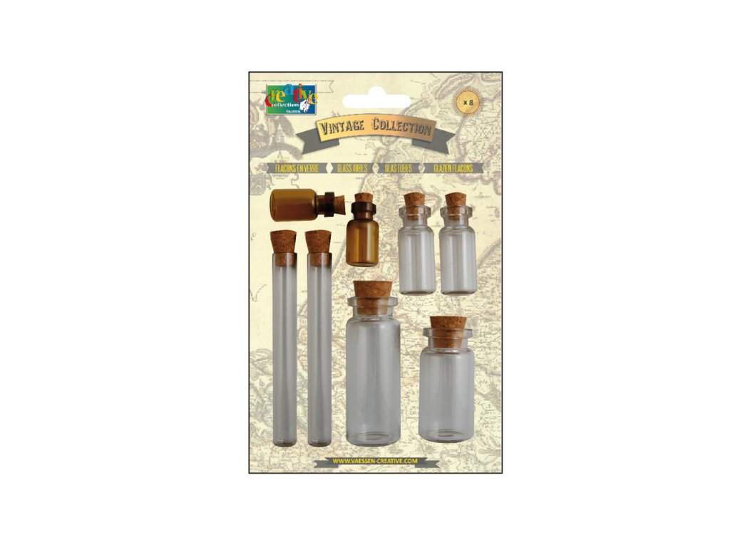 Sada lahviček Vaessen Creative Vintage lahvičky s korkem 8ks