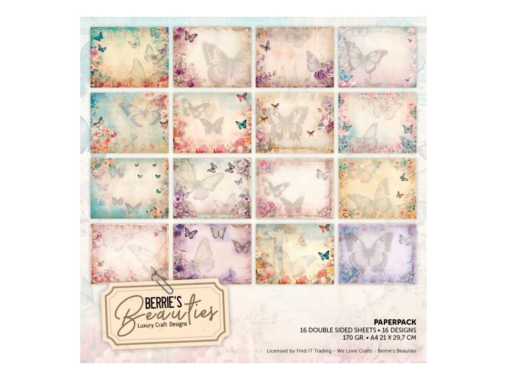 Sada luxusních oboustranných papírů Butterflies motýli A4 16 stran