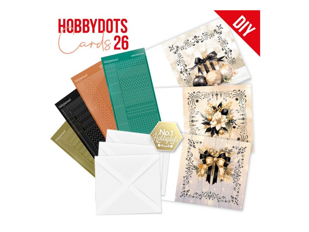 Tato unikátní sada Hobbydots obsahuje vše, co potřebujete k vytvoření tří čtvercových přáníček zlatavé šepotání