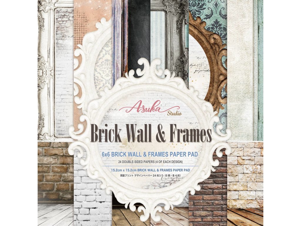 Sada oboustranných papírů Brick Wall & Frames 15x15cm