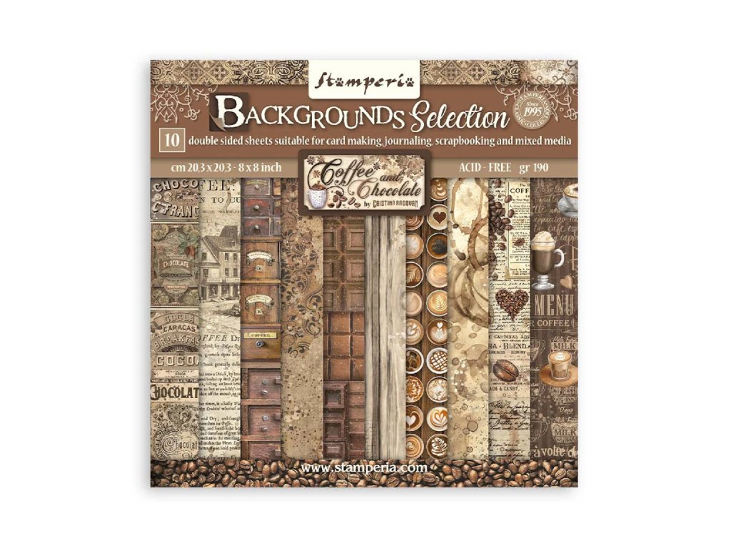 Sada oboustranných papírů Coffee and Chocolate pozadí 20x20cm