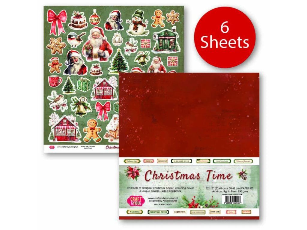 Sada oboustranných papírů Craft & You Design Christmas Time 30x30cm Vánoční čas