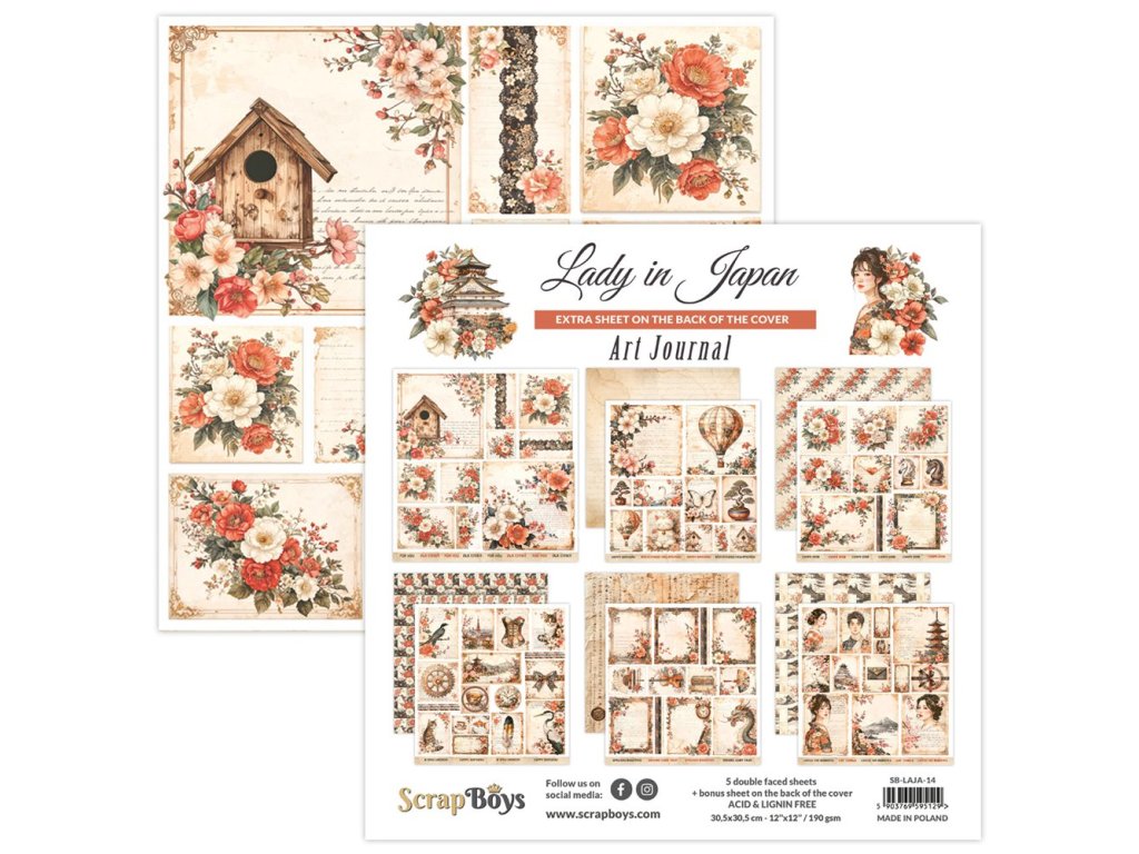 Sada oboustranných papírů ScrapBoys Art Journal Lady in Japan 30x30cm