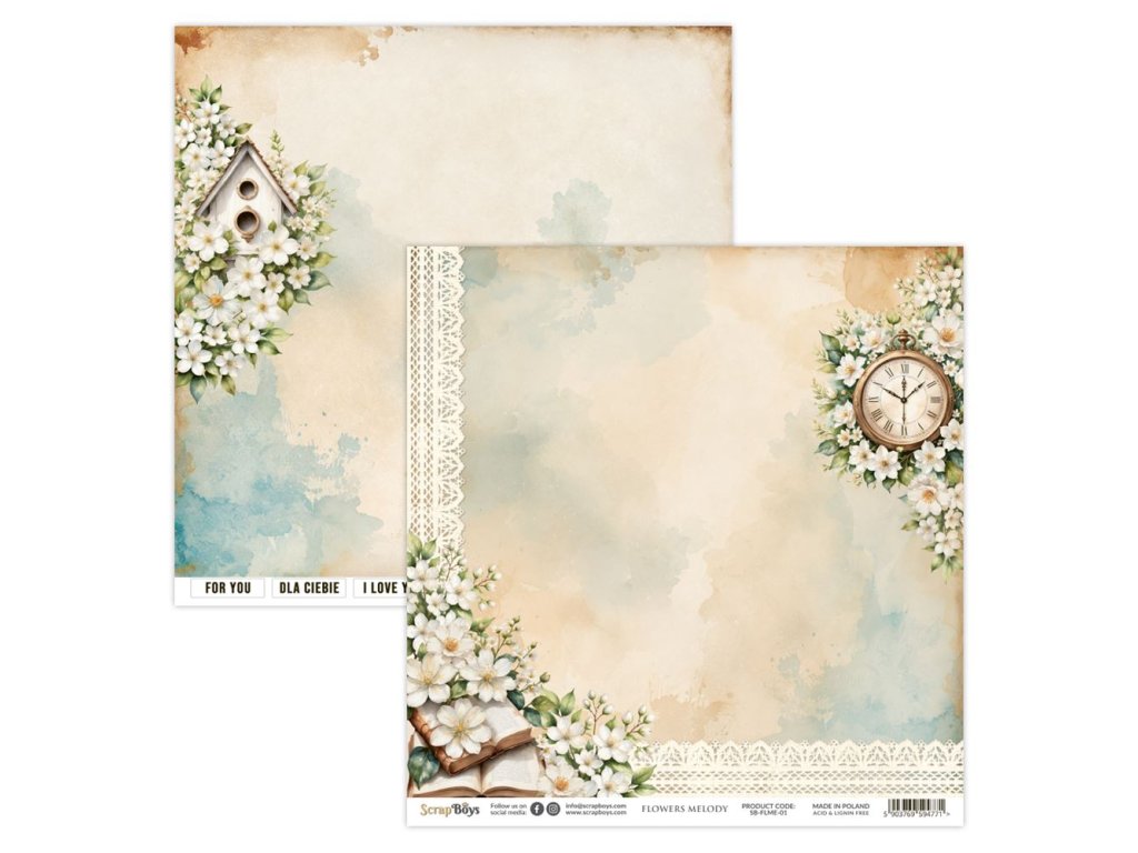 Sada oboustranných papírů ScrapBoys Flowers Melody Květinová melodie 20x20cm