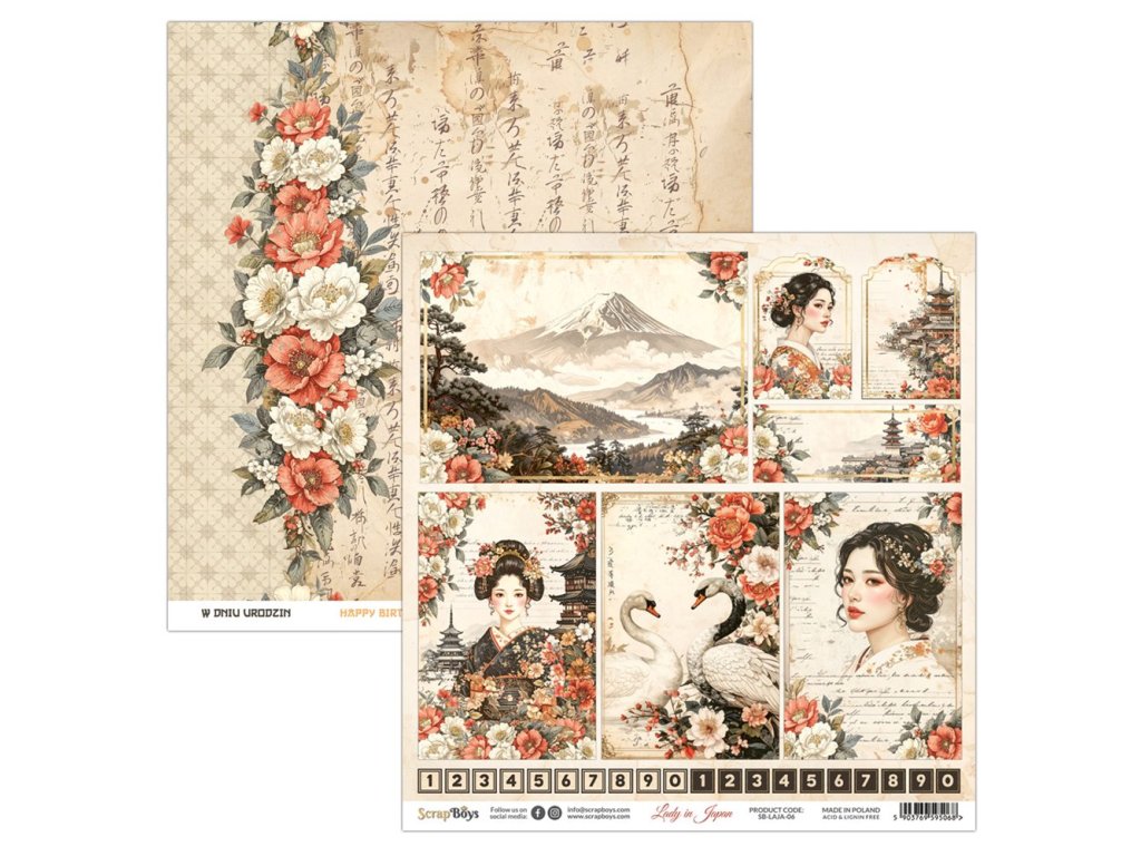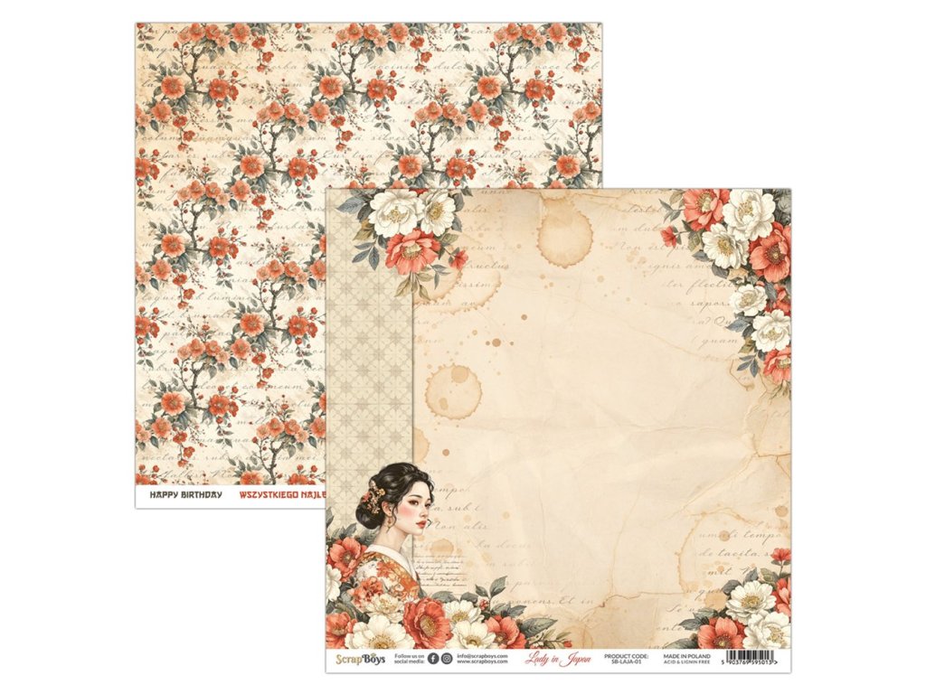 Sada oboustranných papírů ScrapBoys Lady in Japan 30x30cm
