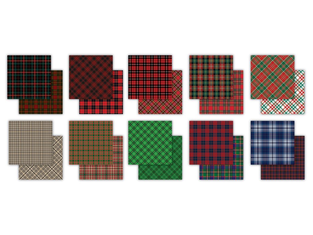 Sada oboustranných papírů Tartan kostky 30x30cm
