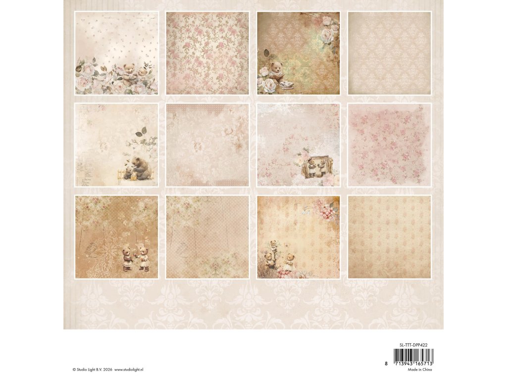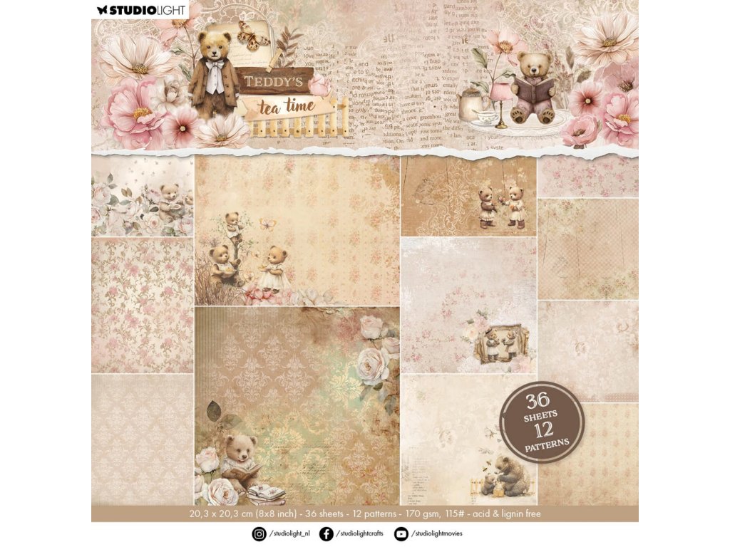 Sada oboustrannýchh papírů Teddy's Tea Time 20x20cm Teddyho čajový čas