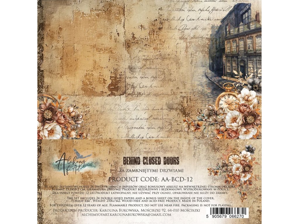 Sada papírů Alchemy of Art Behind Closed Doors Za zavřenými dveřmi 15x15cm