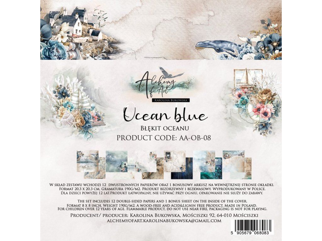 Sada papírů Alchemy of Art Ocean Blue modrý oceán 20x20cm 24ks
