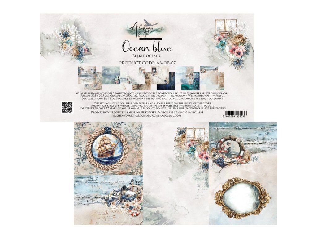 Sada papírů Alchemy of Art Ocean Blue modrý oceán 30x30cm 6ks