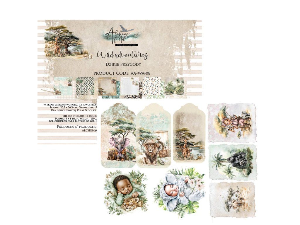 Sada papírů Alchemy of Art Wild Adventures dobrodružství v divočině 20x20cm 12ks