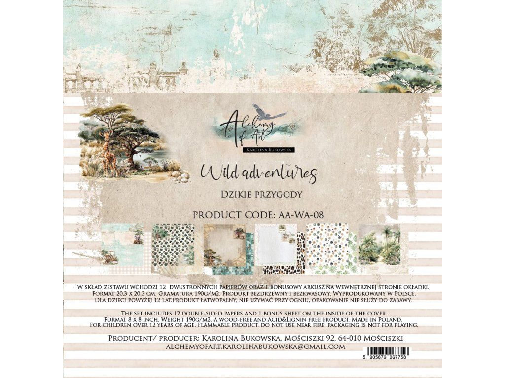 Sada papírů Alchemy of Art Wild Adventures dobrodružství v divočině 20x20cm 24ks