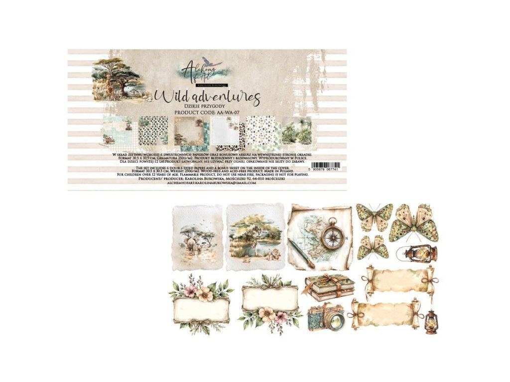Sada papírů Alchemy of Art Wild Adventures dobrodružství v divočině 30x30cm 6ks