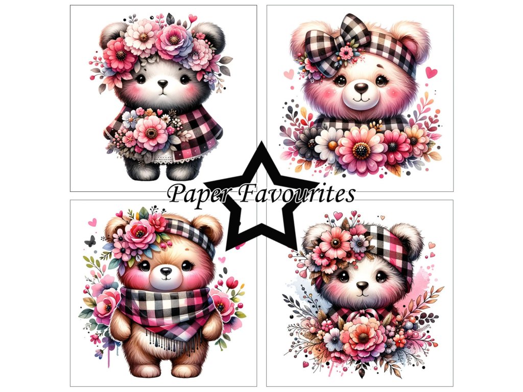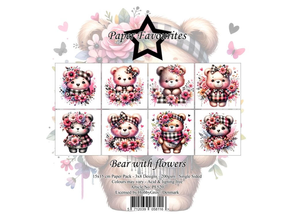 Sada papírů Bear With Flowers 15x15