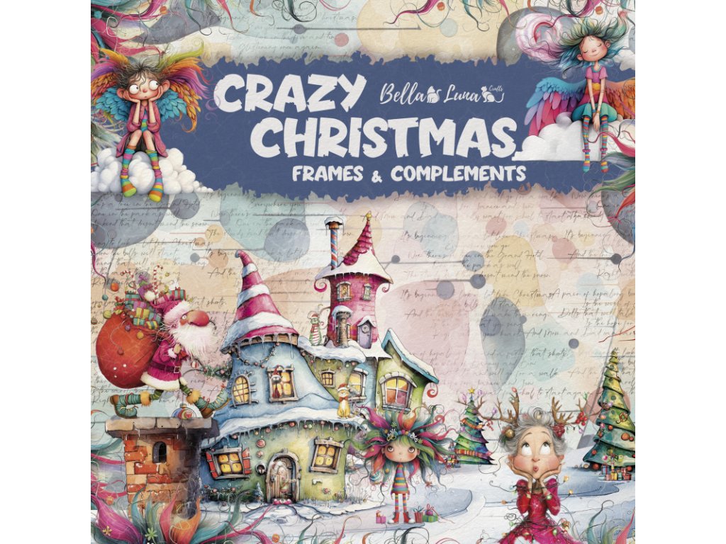 Sada papírů BELLALUNA Crazy Christmas Bláznivé vánoce rámečky a doplňky 30X30cm 12ks