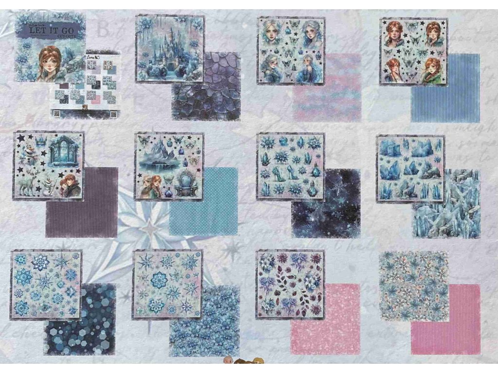 Sada papírů Bellaluna LET IT GO Ledové království doplňky 20x20cm 12ks