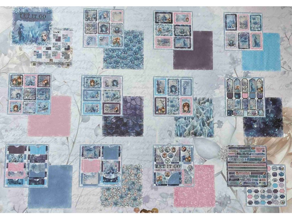 Sada papírů Bellaluna LET IT GO Ledové království rámečky a doplňky 30X30cm 12ks