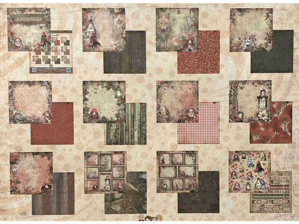 Sada papírů Bellaluna REDHOOD Červená karkulka 30X30cm 12ks